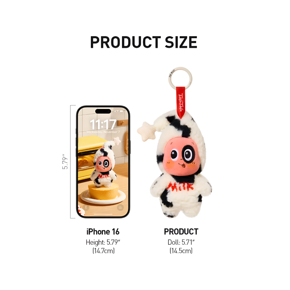 Size: Doll - 14.5cm / 5.71 inches; Strap (including the ring) - 7cm / 2.76 inchees